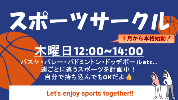それぞれのサークル長が毎週代わる代わる行い、それぞれ違うスポーツを行います✨