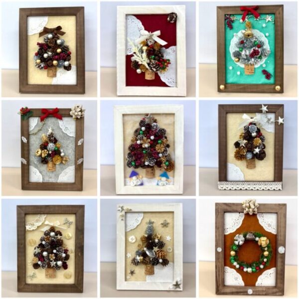 ベースの配置が決まったら、いったん写真を撮って、撮った写真を確認しながらひとつずつグルーガンで貼り付けていきます🎵隙間を好きなパーツで埋めていきデコレーションしていきます✨みんな似た雰囲気になるのかな?と思っていましたが、色で個性を出したり、ビーズで星を作ったり、フェルトでサンタさんを作ってみたりと、こちらも素敵な作品がたくさん💕