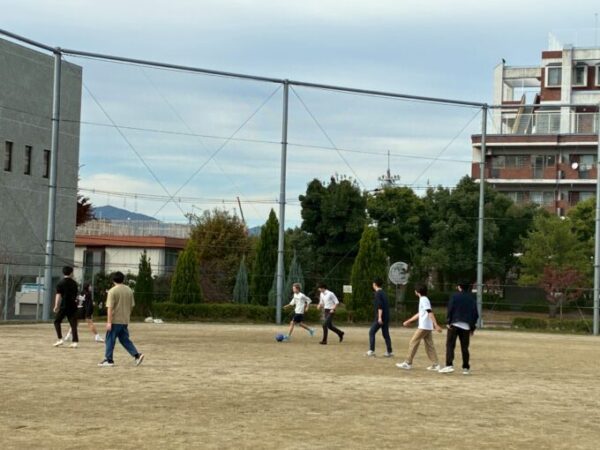 フットサルでは茨木キャンパスの優しい男子たち、ウン十代のスタッフMにもボールを回してくれました。