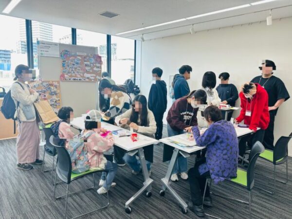 折り紙で周りを装飾してもらう工程のところをお客さんにお願いしました。