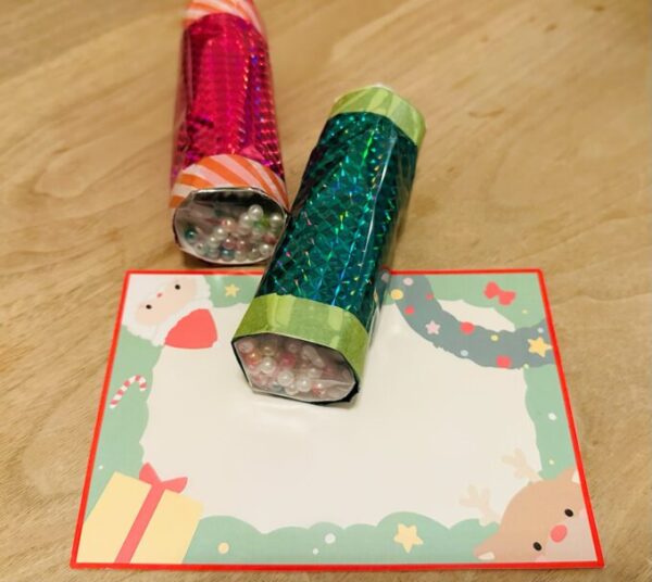 トイレットペーパーの芯の中に、ちゃんと三面鏡が入っているので、ビーズを入れると、光とビーズが反射してキラキラ光るのです✨