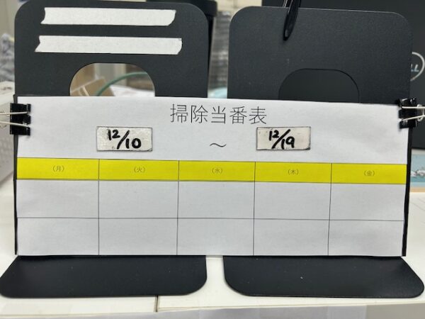 掃除当番表の下に、お仕事内容と丸を付ける用紙を貼っています❗