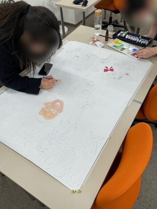⬆️文化祭のポスター制作の様子です!美術部の部員さんが一丸となり作成中です🎨🖌️完成が楽しみですね💭