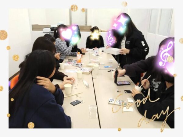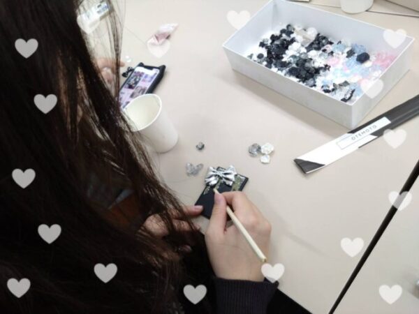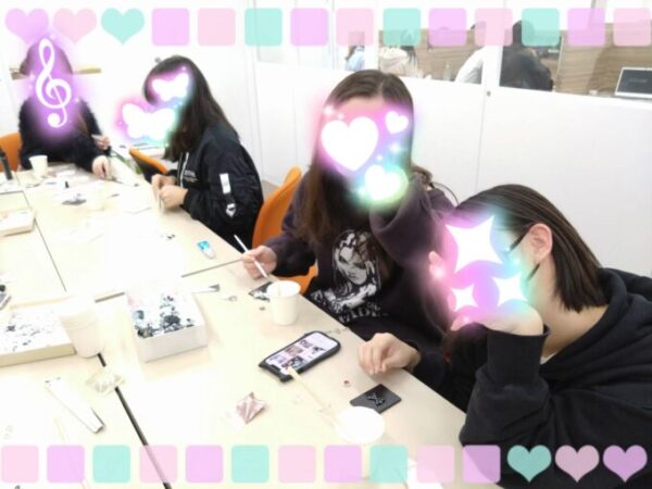 「すぐ固まった!」「かわいい〜!」と歓声があがり、まるでネイルアートのような工程に女子たちはうきうきしながら夢中で作っていました。