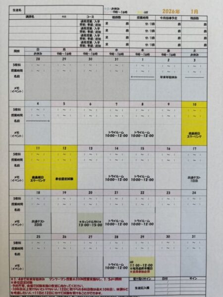 1月のスケジュールをお伝えします。👇👇👇