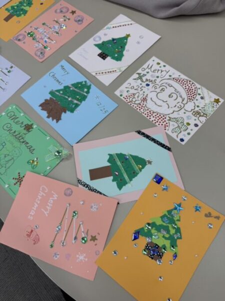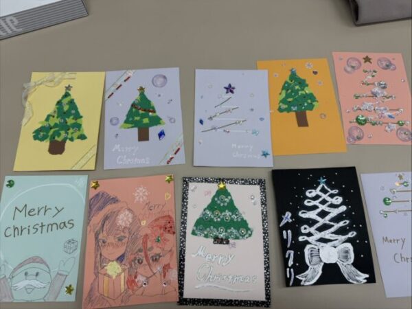 前日までにクリスマスカードの試作や材料の買い出しをしてくれたのは中3のHちゃんとIくん✨