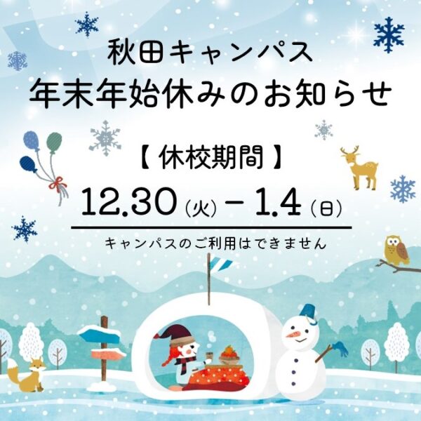 秋田キャンパスは、1月4日まで休校とさせていただきます。