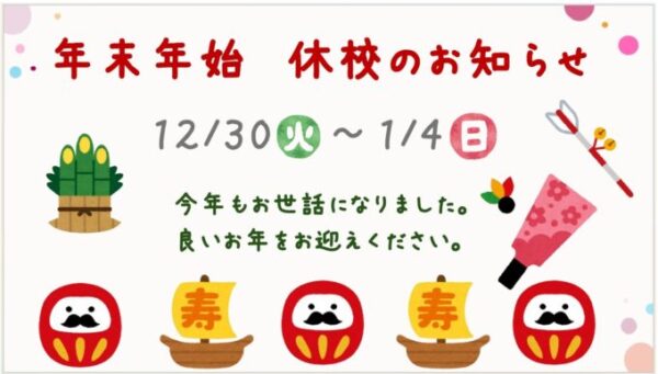 年末年始 休校のお知らせをいたします。