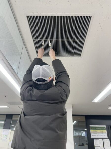 天井の通気口といった見落としがちな所まで、一生懸命手を伸ばして、