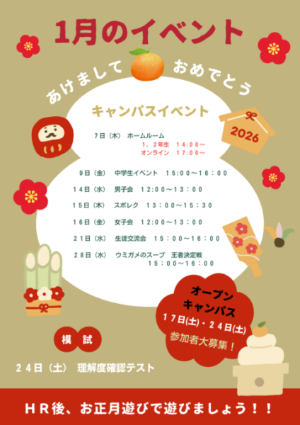 1月のイベントをお知らせいたします✨