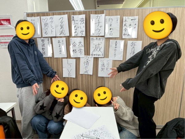 川越キャンパスでは年始に生徒たちが新年の抱負などをしたためてくれました(^皿^)