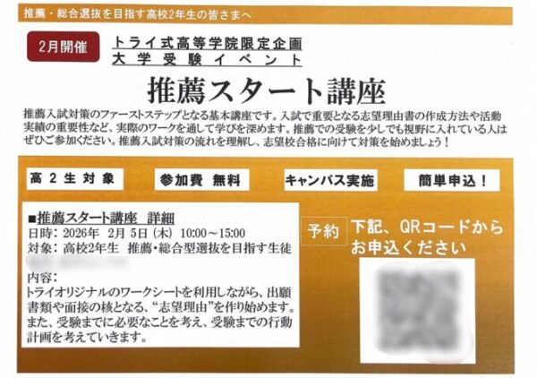 今回は現高2生(新高3生)対象の「推薦スタート講座」についてご紹介いたします!