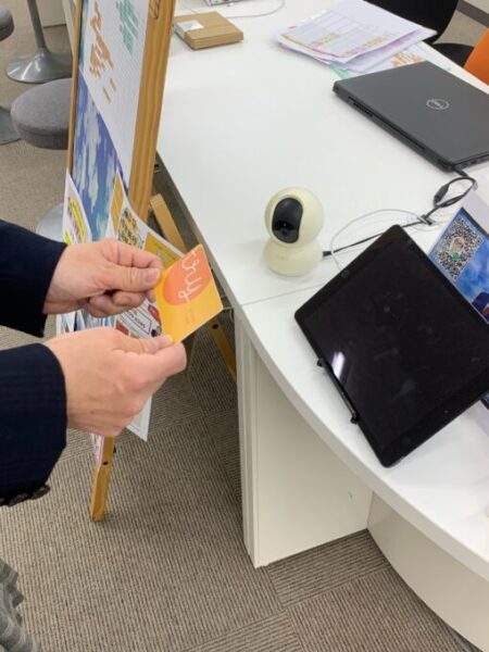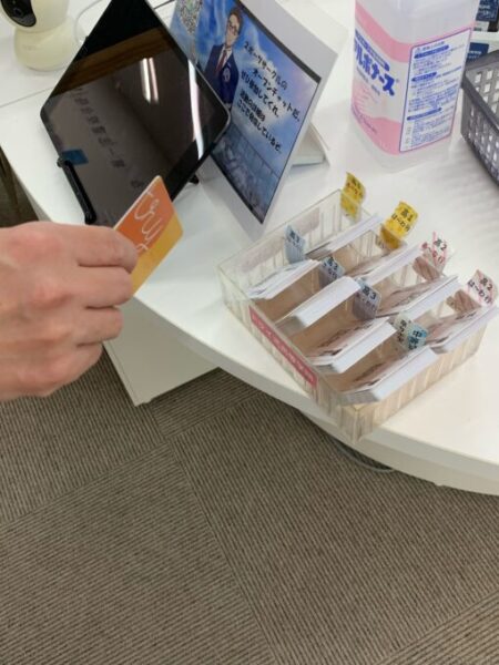 次にカウンターに置いてある自分の名前が書かれている「入退室カード」を取ります!これをタブレットにかざせば完了です✨✨