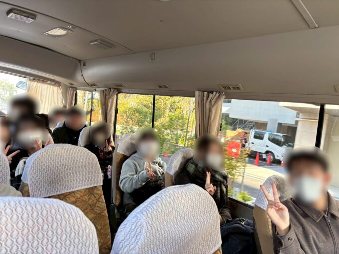 会場への移動は、みんなでマイクロバスに乗って出発🚌💨