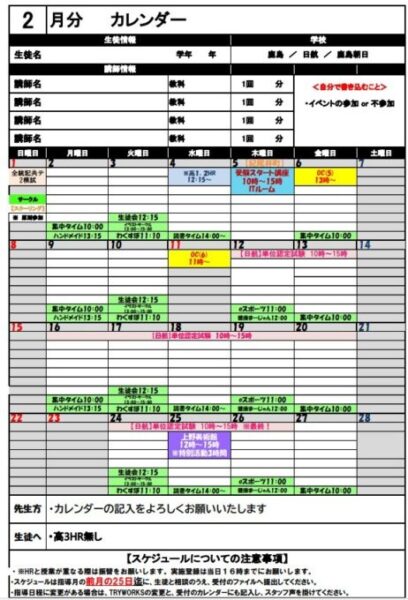 立川キャンパスの2月のカレンダーをご案内いたします。