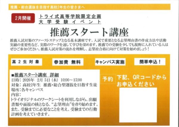 こちらは高校2年生の生徒さんを対象に、推薦入試対策の基本を学ぶ講座です。