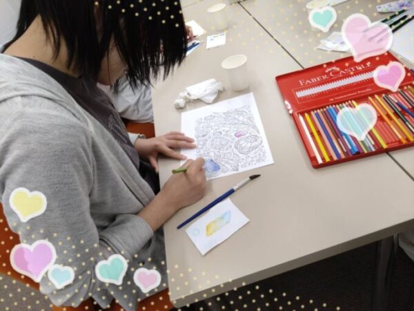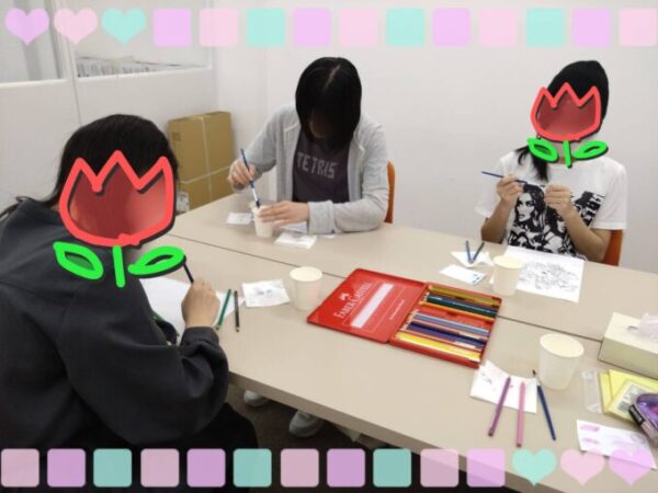 今日は高等部と中等部の生徒たちで、ファーバーカステル水彩色鉛筆 を使ってぬりえに挑戦している様子をご紹介します!