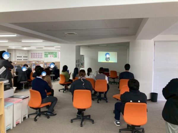 弁論大会~全国~の舞台で発表しているMさんを、キャンパスでみんなで応援しました🔥