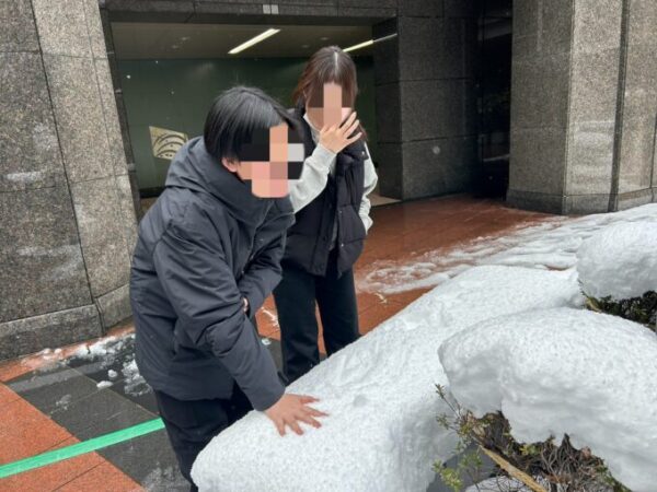 帰りに積もった雪でプチ雪遊び!