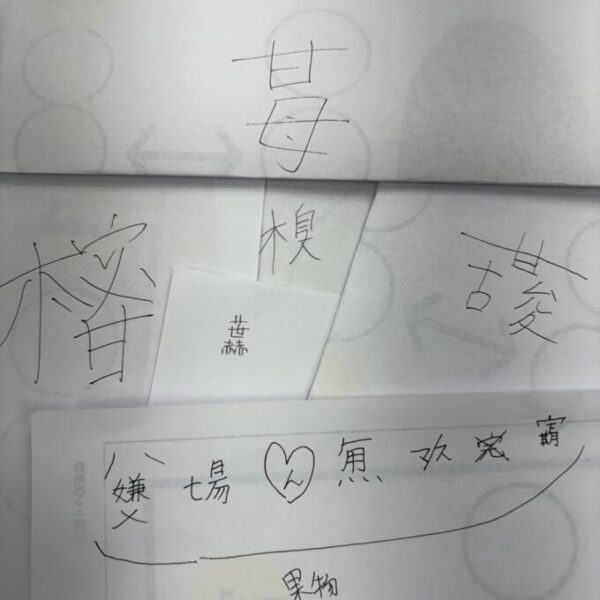 みんなで新しい漢字を作ってみよう!というものです🎵テーマは『果物🍎🍊🍇🍑』で、漢字一文字で作ります。一人一文字は考えてみよう!もちろん相談もOK!みんなのユニークな発想力が試されます✊