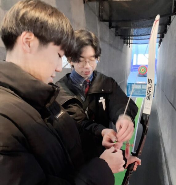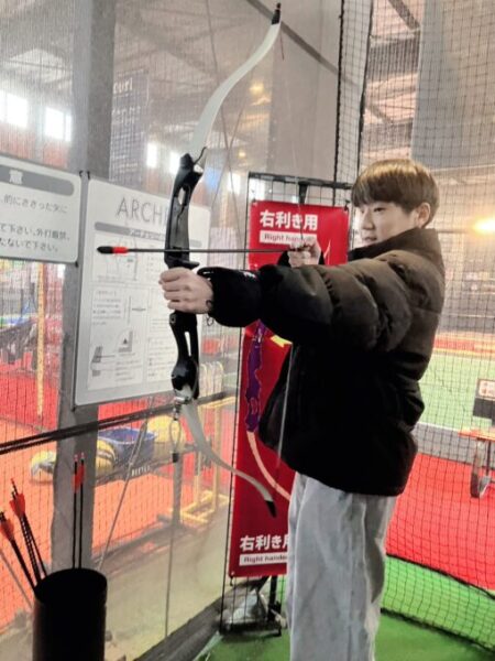 こちらでは、「アーチェリー」をやってみたい生徒さんに、やり方を教えてあげています☺️✨