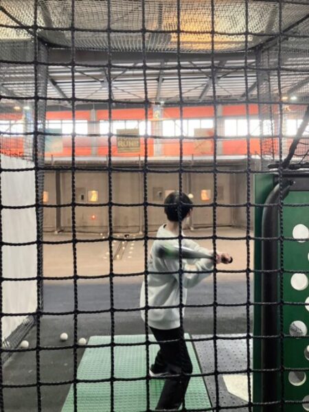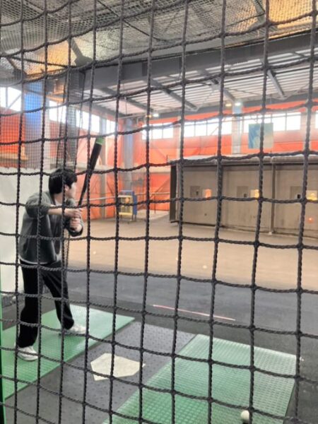 中等部の生徒さんと、スポーツが大好きな生徒さんはバッティングにも挑戦!
