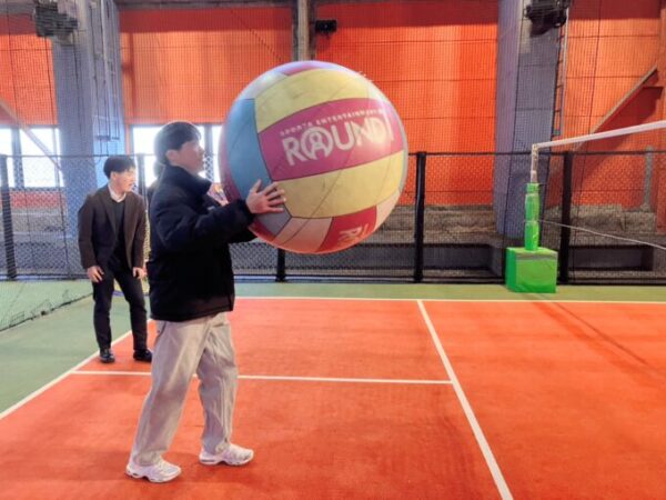まずは巨大ボールでバレー!!