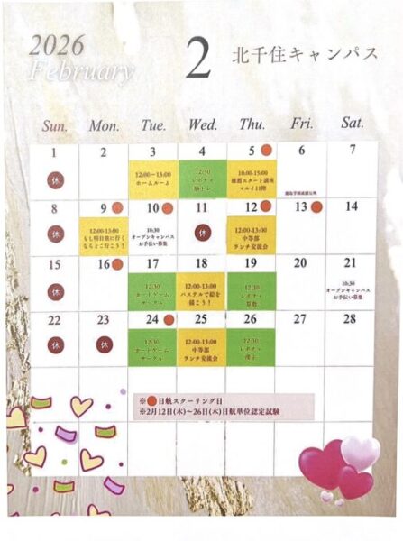 今日は北千住キャンパスの2月のスケジュールをご紹介します!