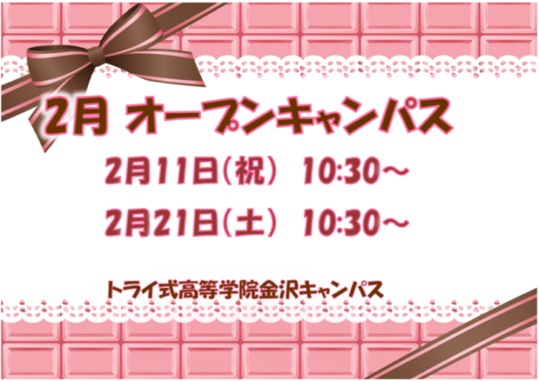 トライ式高等学院 金沢キャンパスより、2月のオープンキャンパス開催のお知らせです。