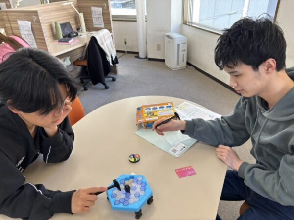 やり始めた途端、真剣になって何ゲームも挑み続ける2人。🔥その後参加者が増えて、最終的にはは7人で盛り上がりました(^▽^)/