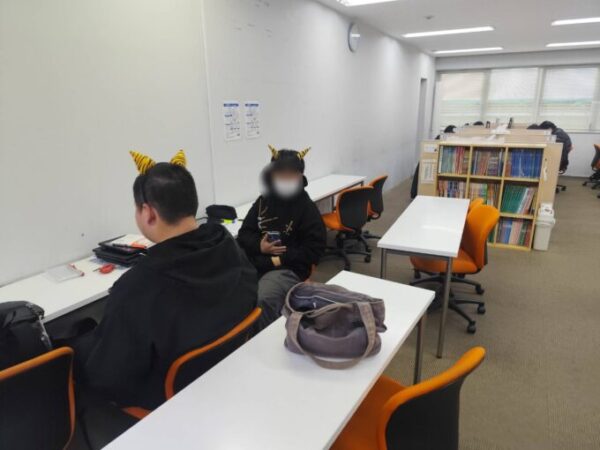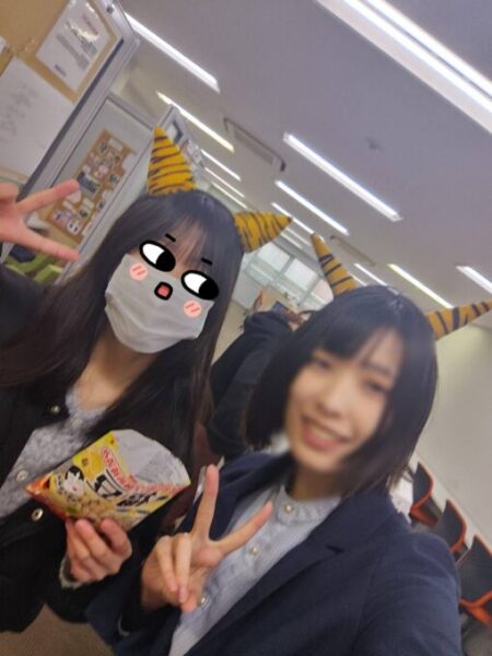 最初は「何やってんすか(笑)」としらーっとしていた男子たちも本当はつけてみたかったようで、皆が下校して人が減り始めた夕方の時間にしっかり鬼になっていました(*´艸`)