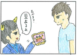 まめは「魔滅」という語呂合わせで、投げて鬼を追い払うことで無病息災な一年を願うのが節分の追儺(ついな)という行事だそうです。