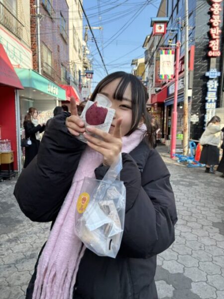 「もうちょっと食べたいなぁ」と高2Yさんが選んだのはロングポテト。長くてまるで騎士の刀剣のよう。高2Tさんはコグマパン。「コグマ」とは韓国語でさつまいものことだそう。勉強になりますね。
