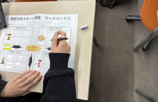 入試で重要となる志望理由書の作成方法や活動実績の重要性など、実際のワークを通して学びを深めました。