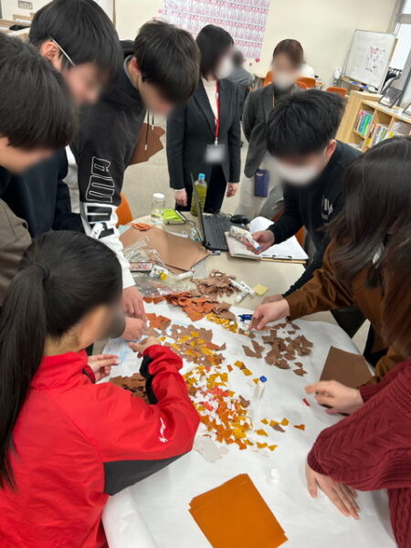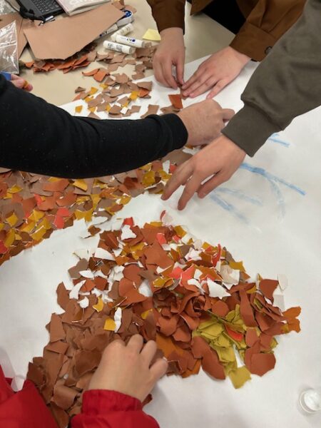 みんなで茶色の紙をちぎり、木の形になるように貼り付けていきました🍂