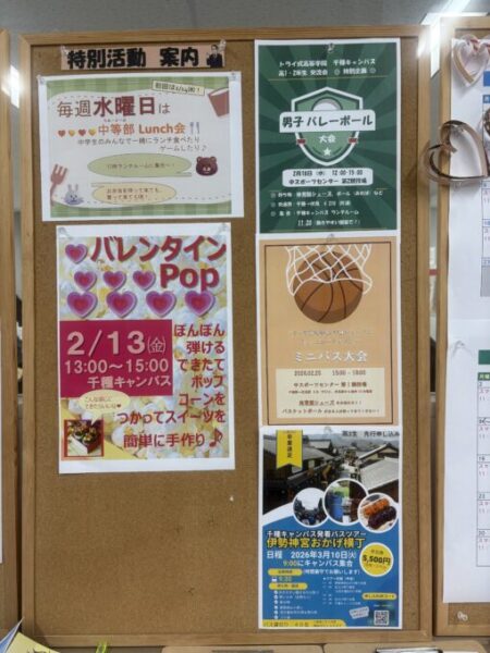 バレンタインにちなんだおやつ作り、たくさんのスポーツ大会、各種ボランティア活動など、聞いているだけでわくわくしてくる案内が盛りだくさんでした!