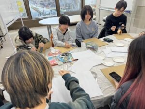 それぞれが引いたお題をもとに、「どんな顔にしよう?」「表情は?」と