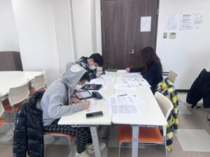 中には、なかなかペンが進まない生徒もいましたが、OBのTくんや職員が声をかけながら