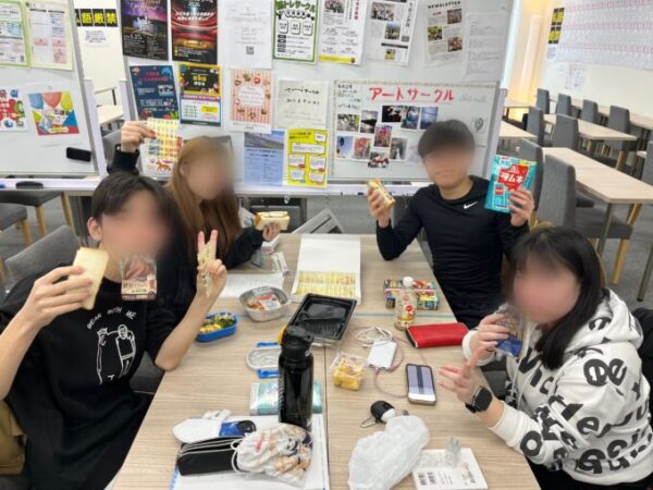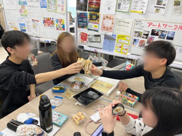 持参のお弁当を食べる生徒が多いですが、近くのコンビニ、スーパー、マクドナルドなどで購入して交流スペースに持ってくる生徒もいます😋😋😋