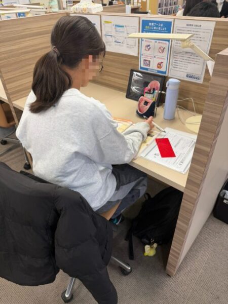 静かに自習しています。