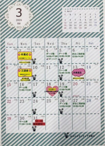 来る3月のカレンダーを掲載します!!