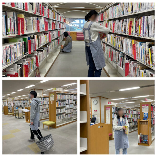 返却された本を元の棚に戻したり、貸し出しのリクエストがあったものを集めるお仕事に従事します📕