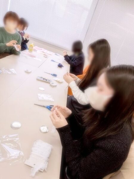 自分の推しの缶バッチを付けるように作った子や、ロゼットを可愛くデコった子などそれぞれとても可愛くできました🩷