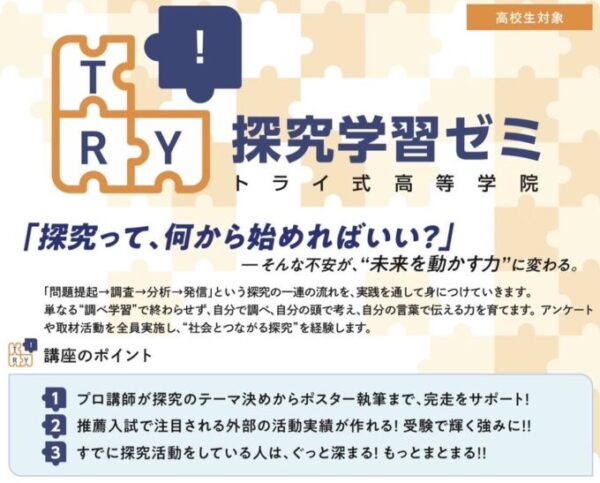 トライ式高等学院 探求学習ゼミのお知らせです✅