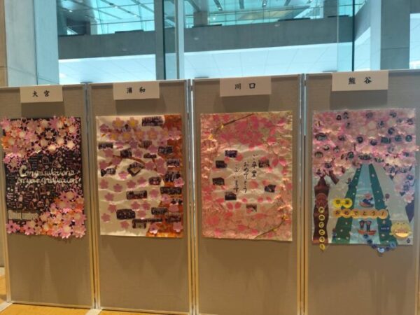 会場入り口では、在校生や先生方からのメッセージボードが卒業生を出迎えます。