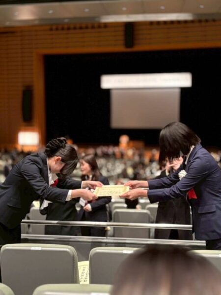 最後に卒業生一同で振り返って保護者の方々に感謝を伝え、感動的な式典となりました。