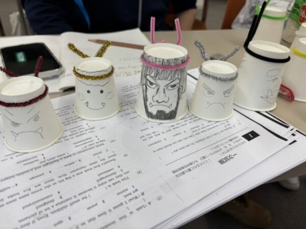 (準備中に作られていた紙コップの鬼たちは、ここで活躍しました!)