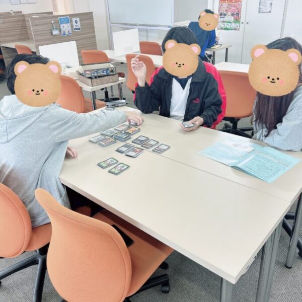 カードゲームをする高3生と在校生。