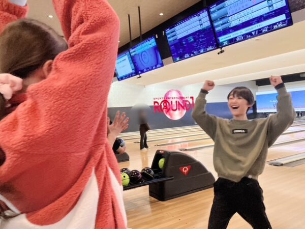 スペアやストライクをとったらガッツポーズ&ハイタッチ🙌🙌
