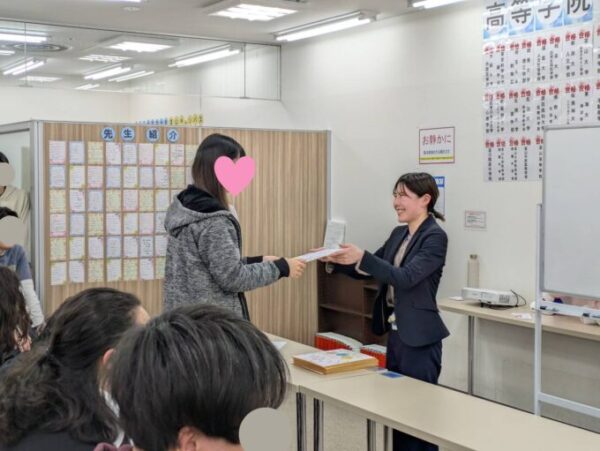 最後に、キャンパス長から3年生に、在校生みんなで作った色紙が渡されました📨